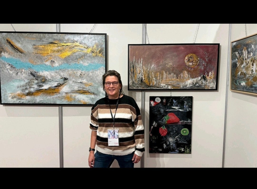 Acrylique, pâte de structure, feuilles d’or ou travail au doigt : chaque geste est instinctif, chaque relief raconte la nature.